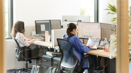 Work lifestyle imagery in tech startup offices, life science research labs, and investment firms